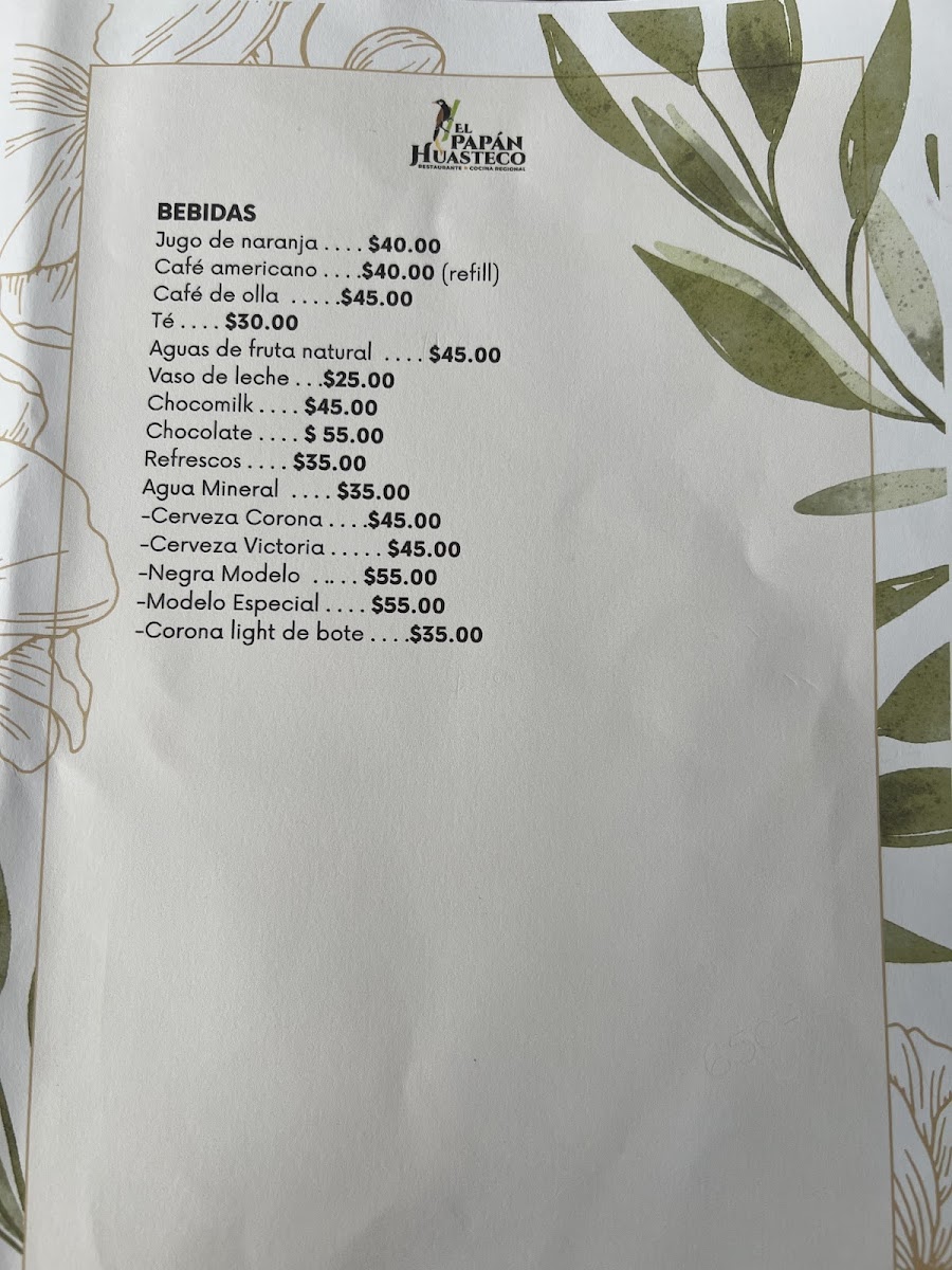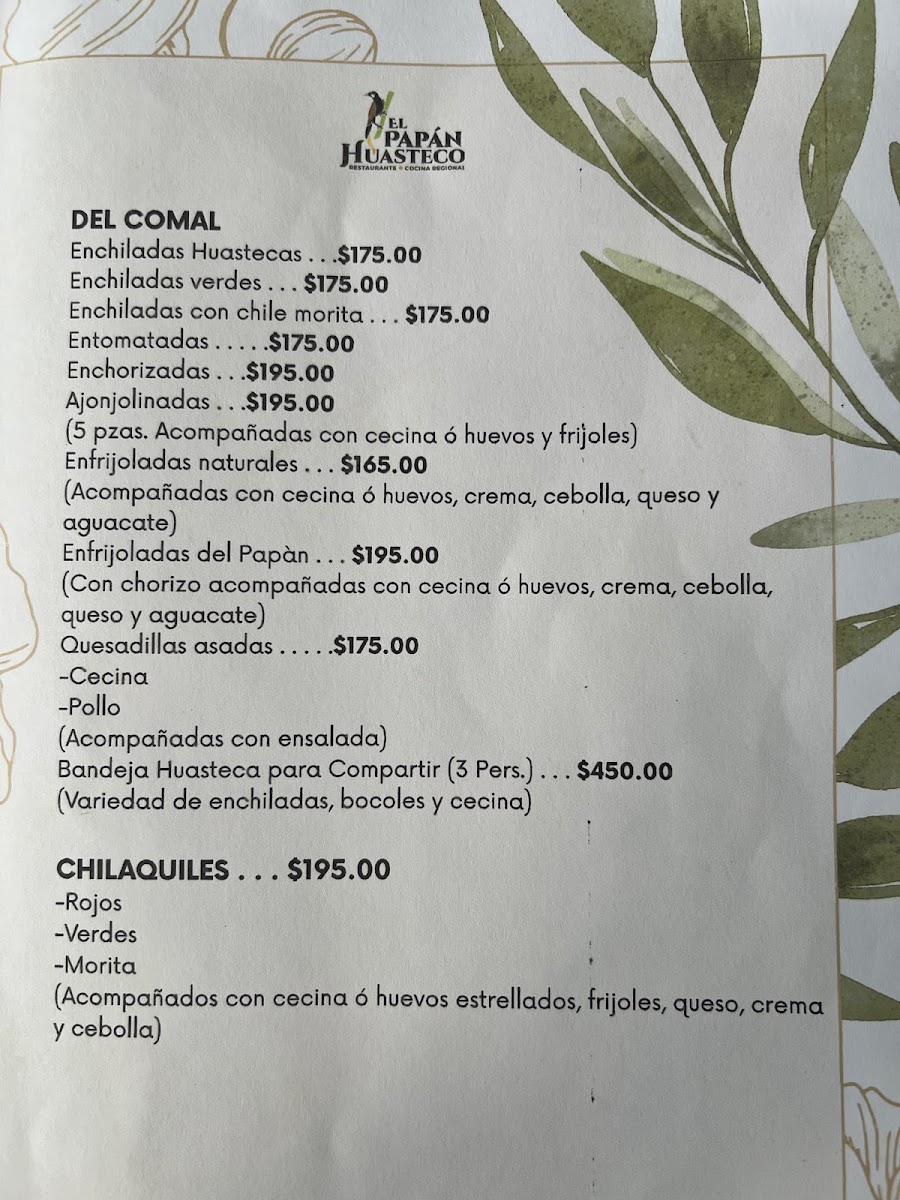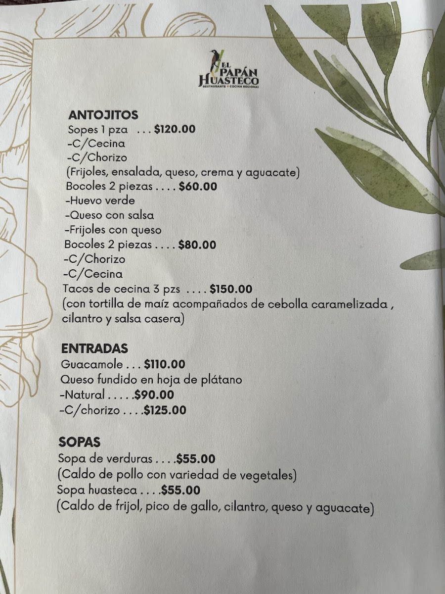 El Papán Huasteco Xilitla Menu