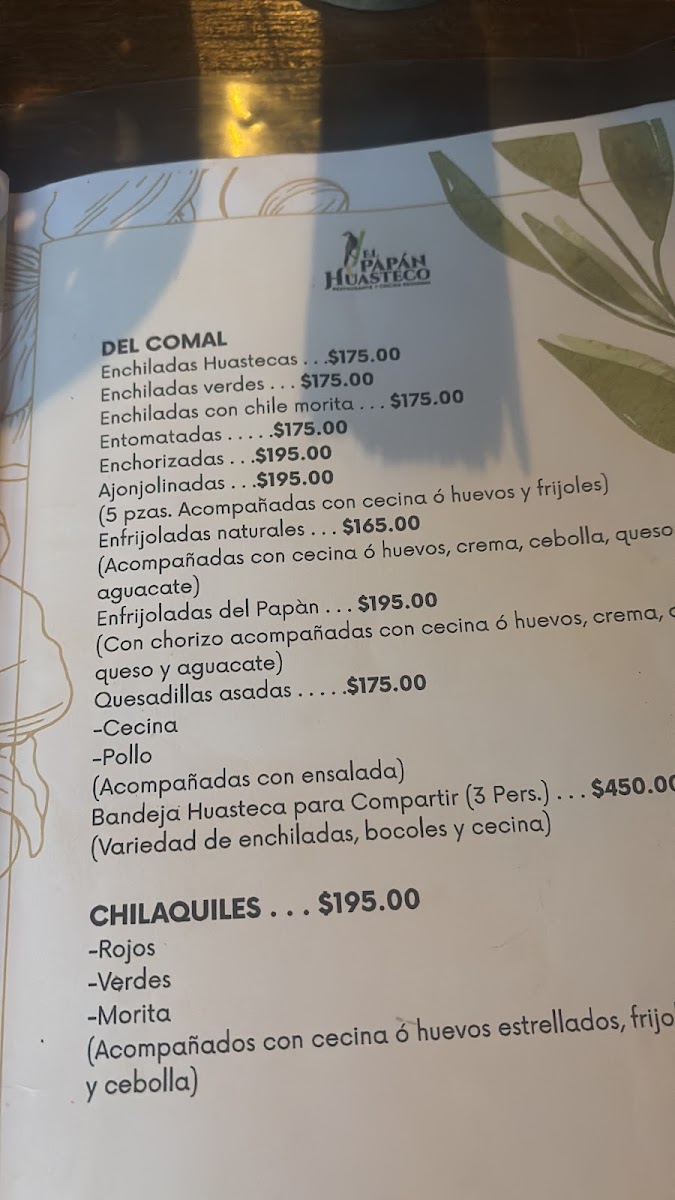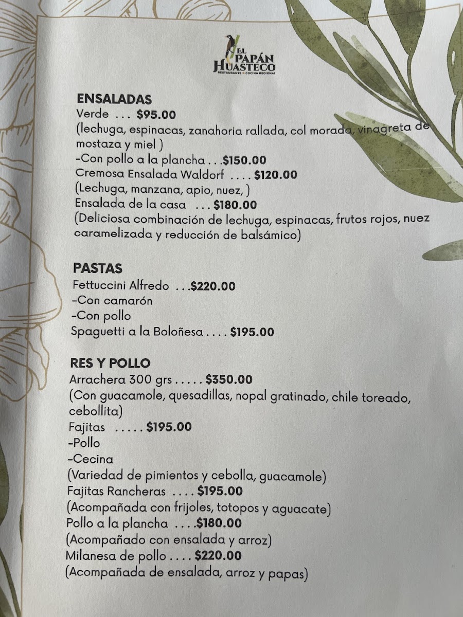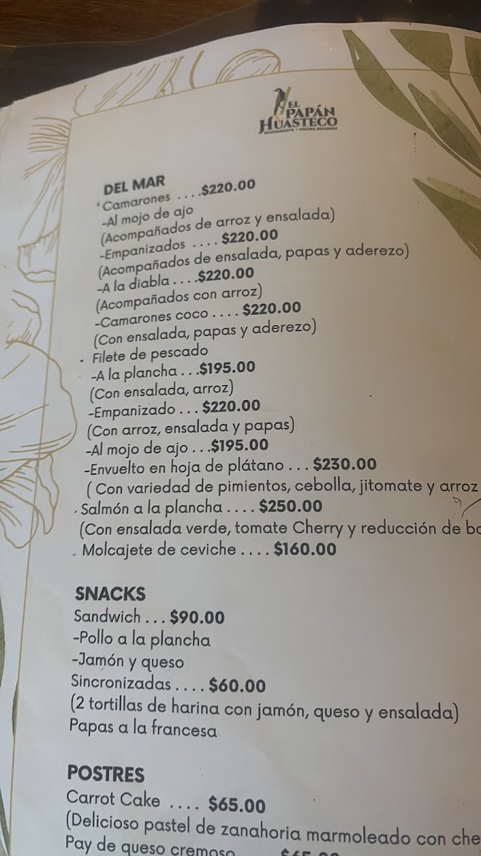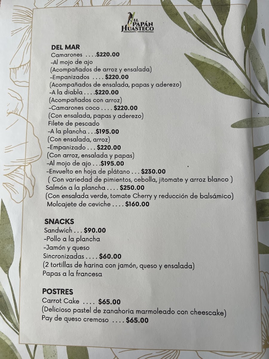 El Papán Huasteco Xilitla Menu